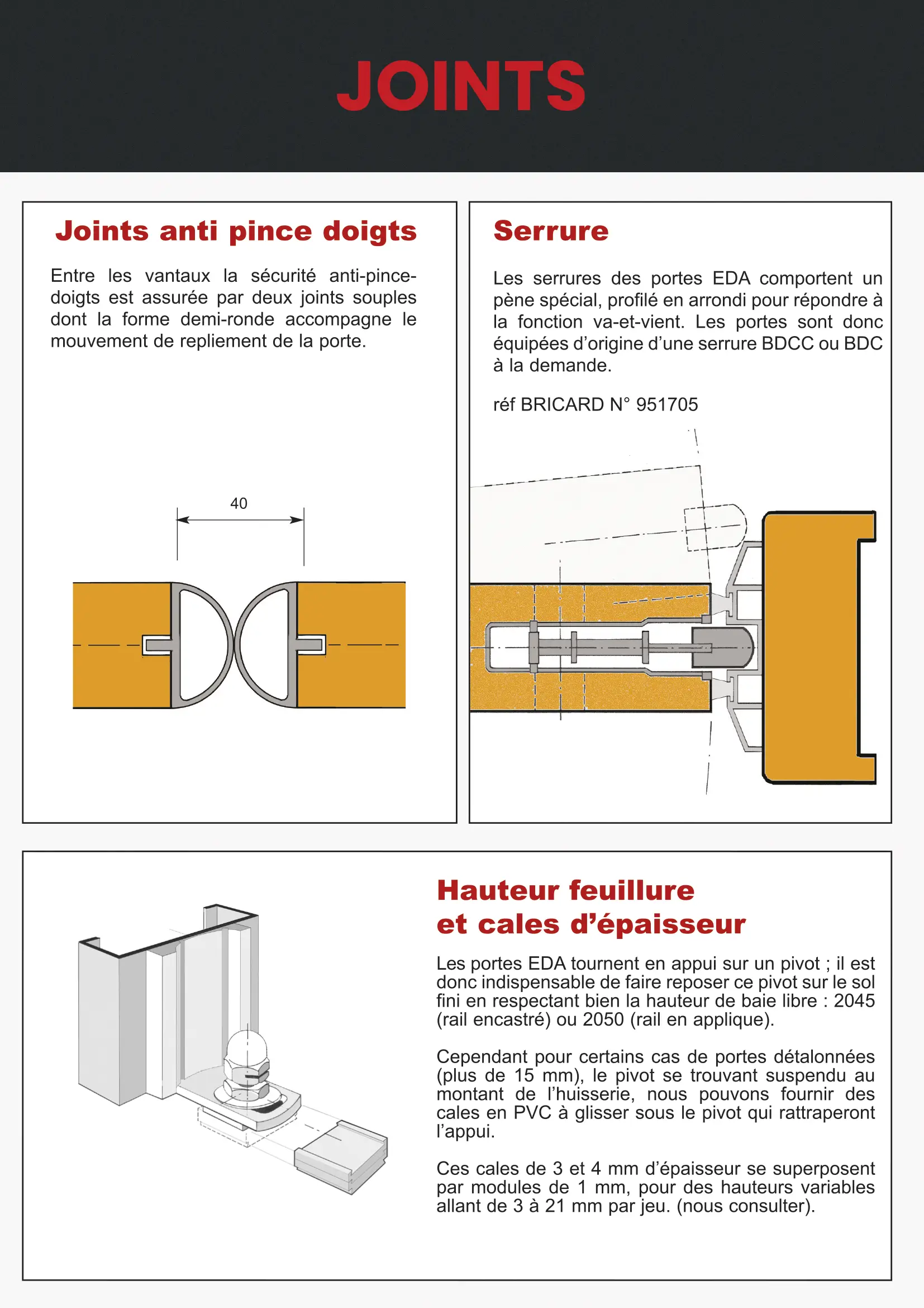 Les portes pliantes EDA, à mouvement va-et- vient, sont concues pour améliorer l’accessibilité aux PMR dans l’habitat ou les établissements spécialisés.