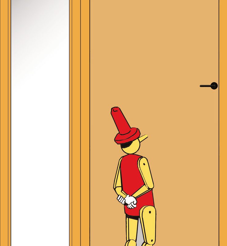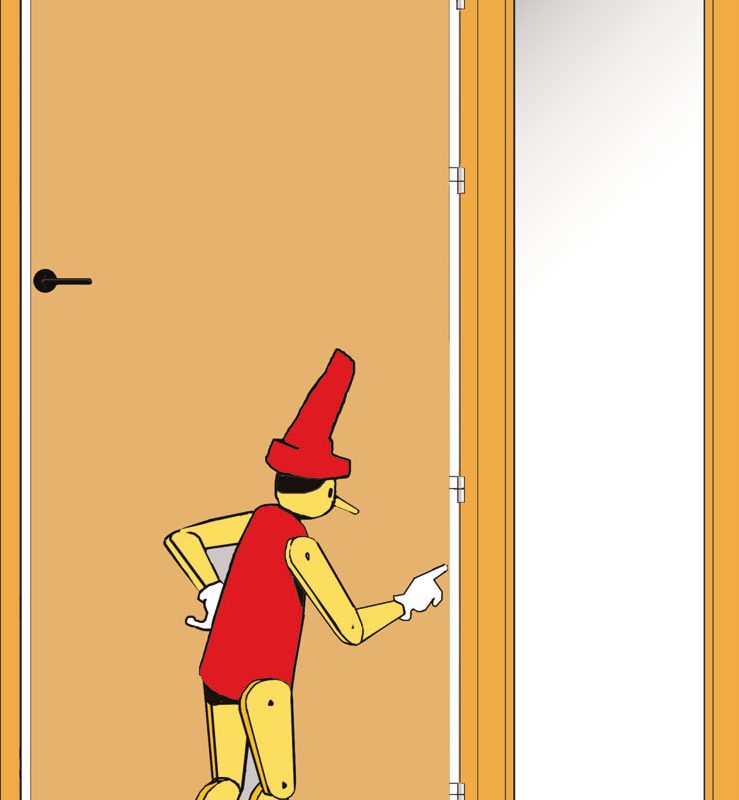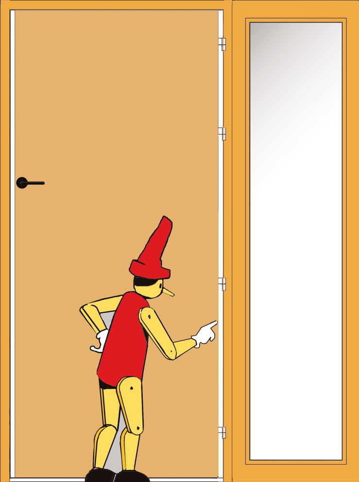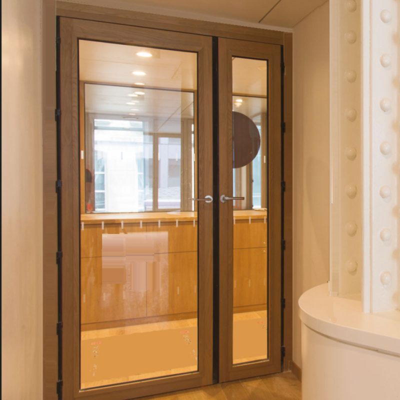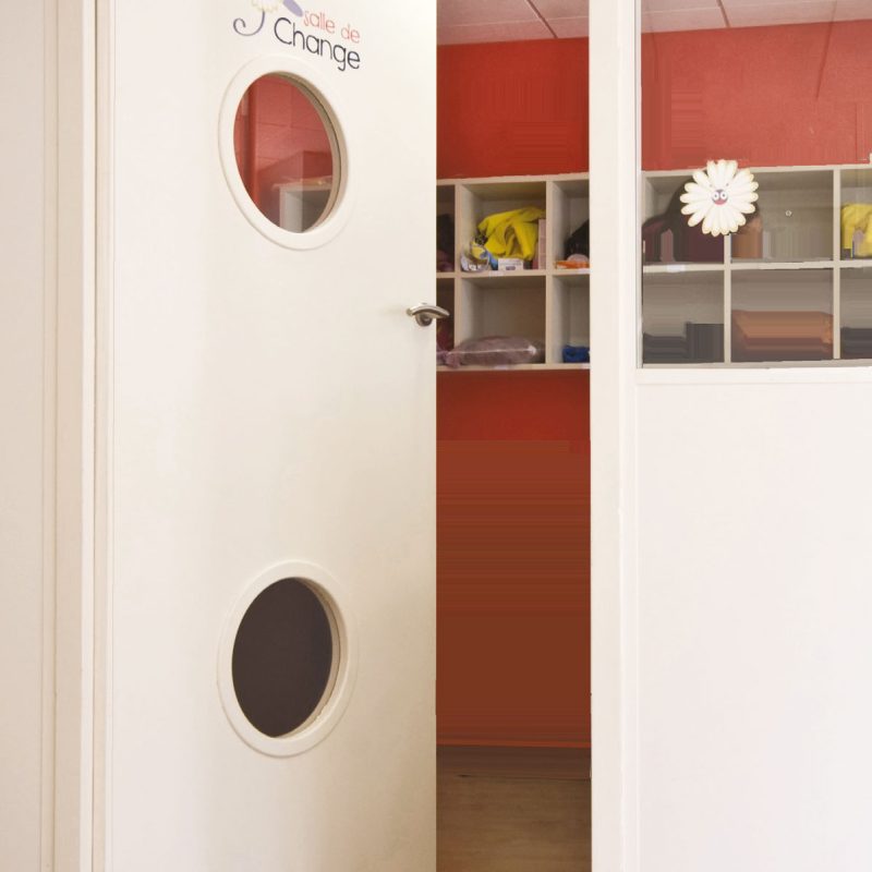 La sécurité anti pince-doigts est assurée par des joints en PVC fixés aux angles concernés par le risque de pincement, sur la porte mais aussi sur l’huisserie.