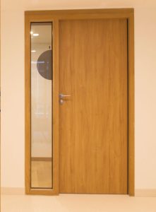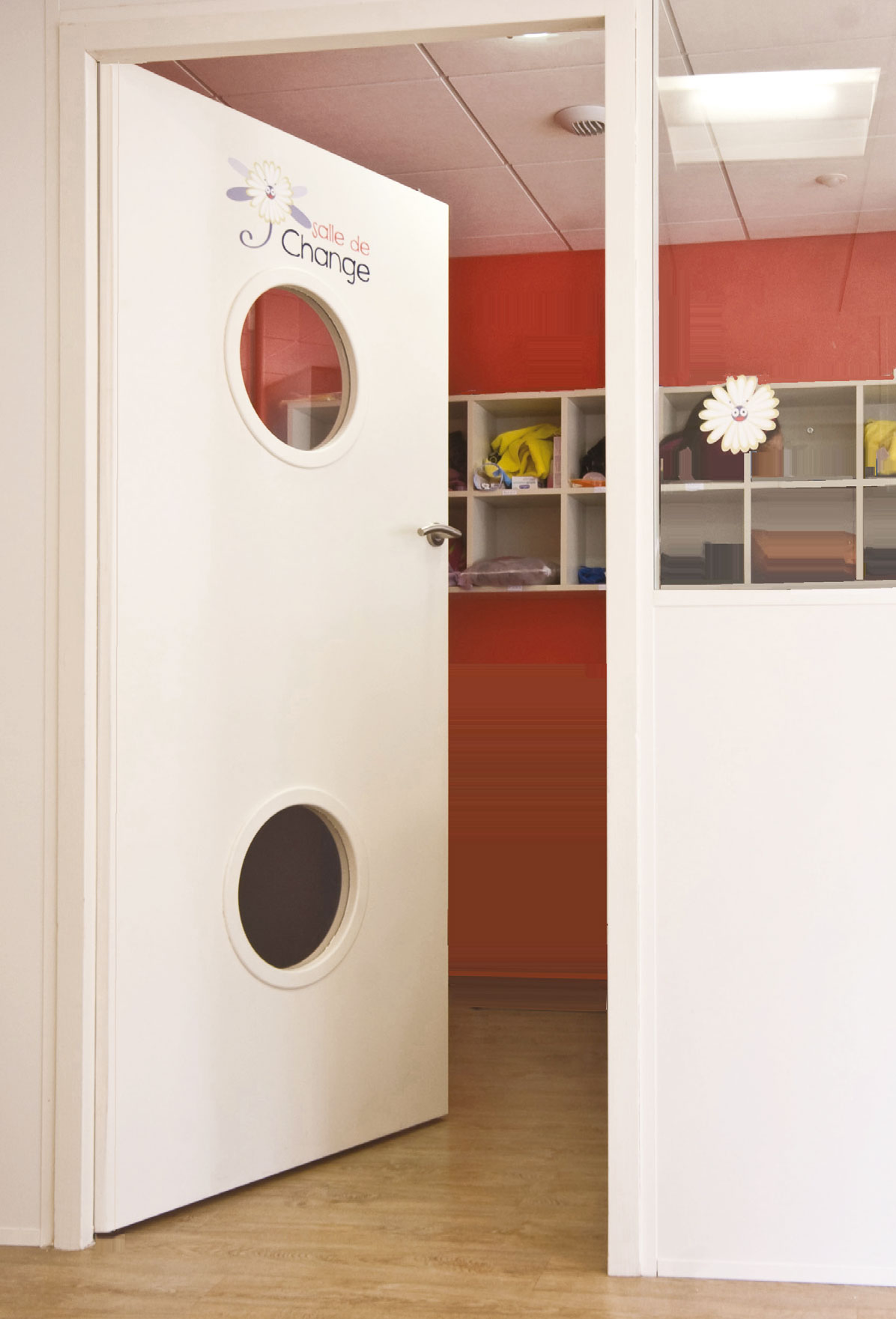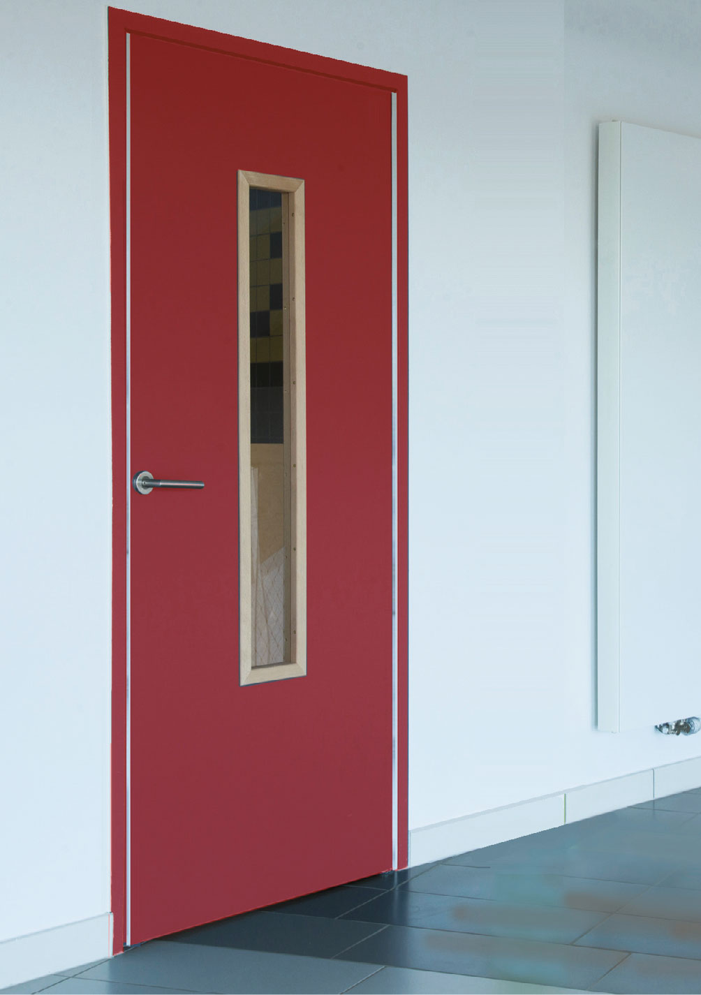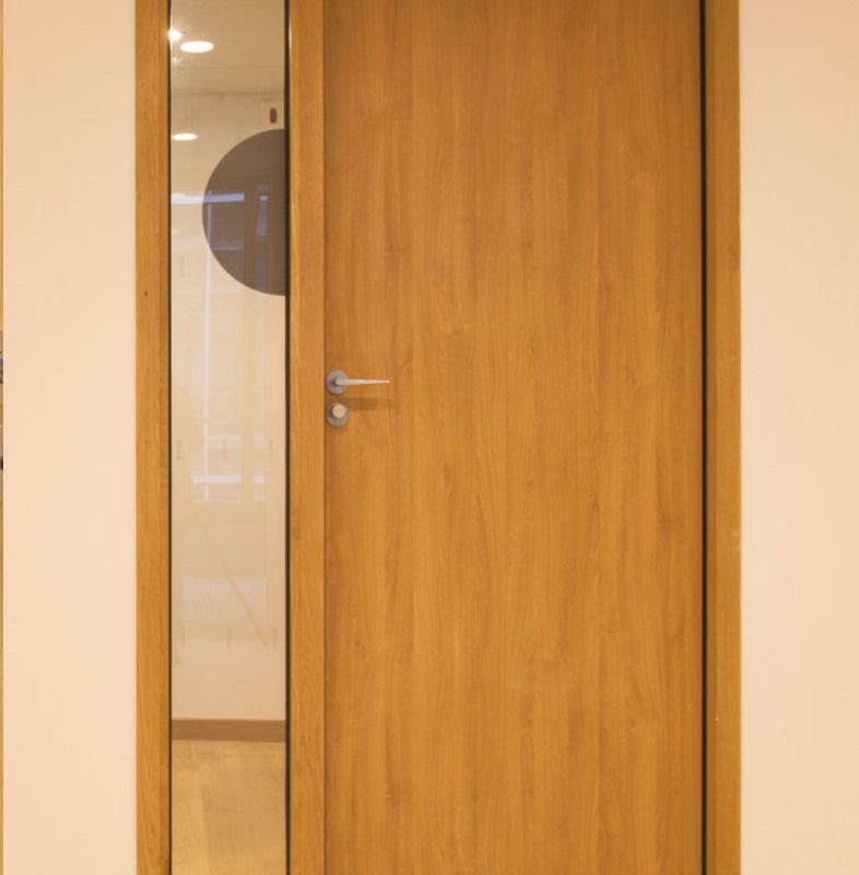 Conservant le concept esthétique de joints souples toute hauteur des portes KID180, la version vitrée offre une sécurité supplémentaire avec un grand vitrage pour une vision traversante et une grande clarté dans la pièce.